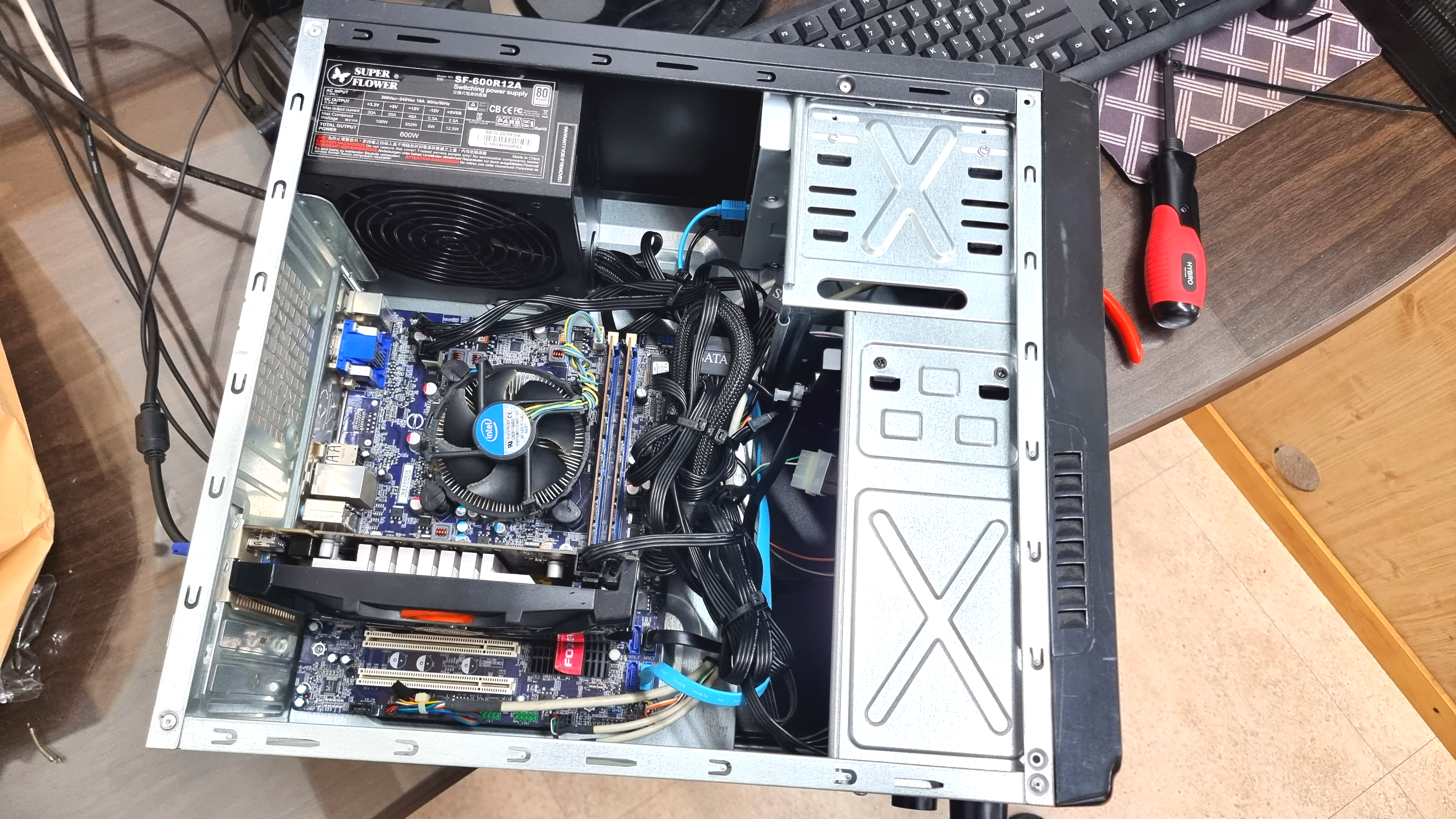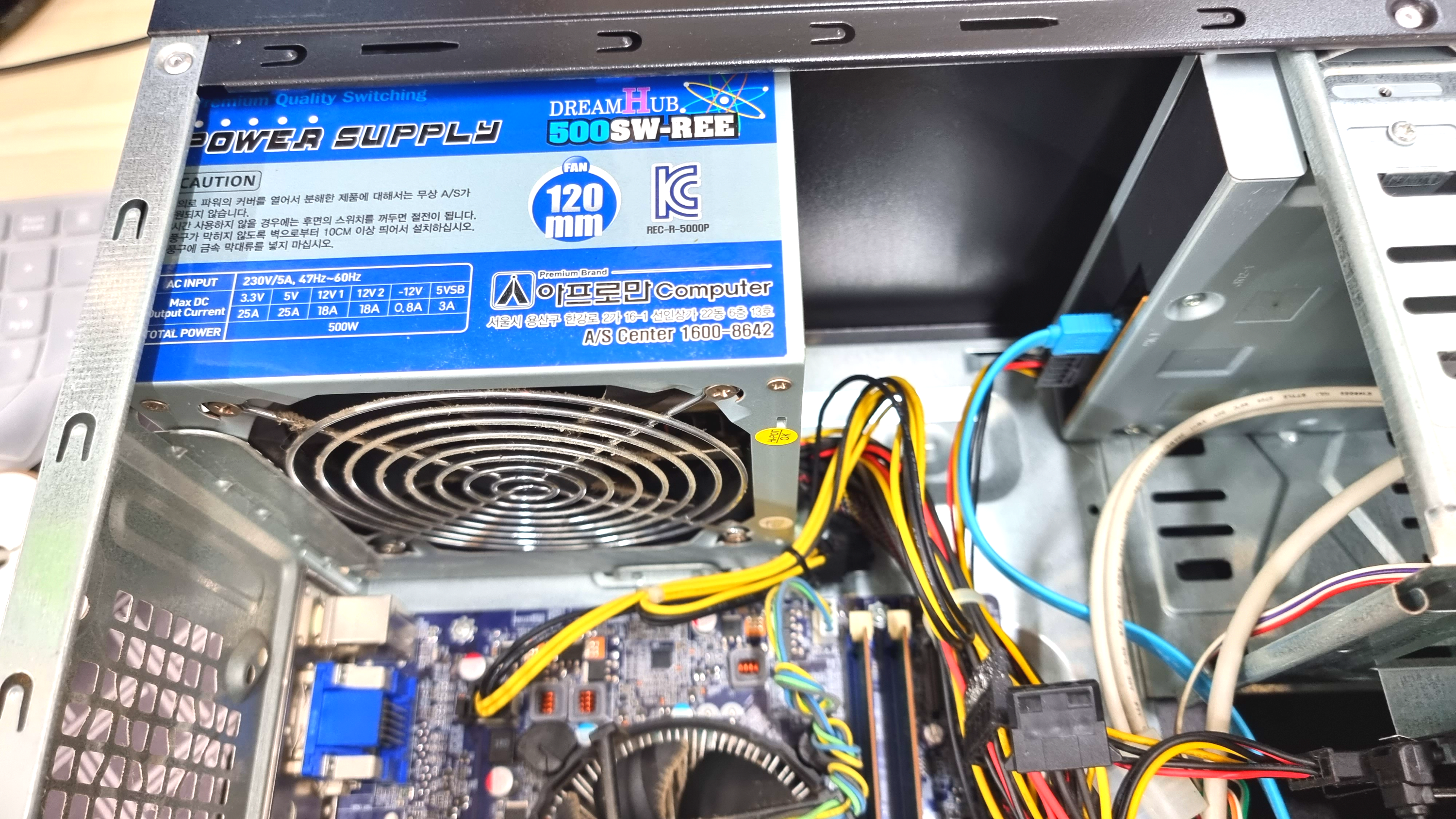 컴퓨터 내부를 보니 오래된 파워가 보입니다